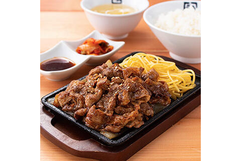 店前の鉄板で焼き上げる鉄板焼肉定食と焼肉丼、女性に人気の冷麺、熱々の豆腐チゲなど取り揃えております。