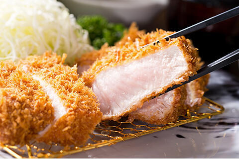 とんかつは、「北海道 ゆめの大地豚」「ハーブ三元豚」を店舗で厚切りにし、1枚1枚丁寧に柔らかくジューシーに仕上げています。